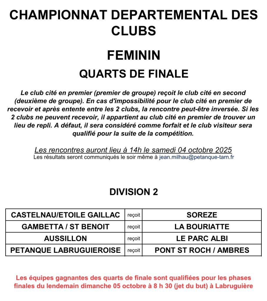 CHAMPIONNAT DEPARTEMENTAL DES CLUBS OPEN QUARTS DE FINALES